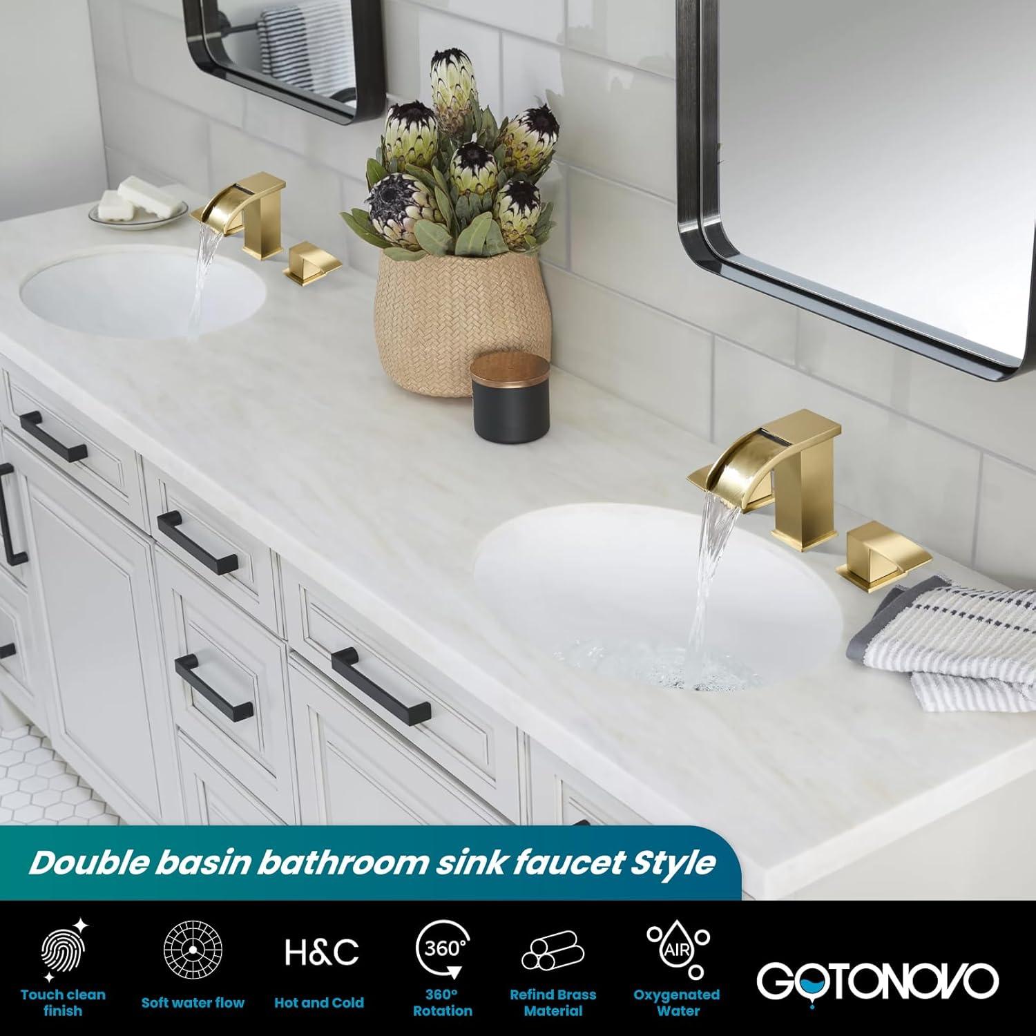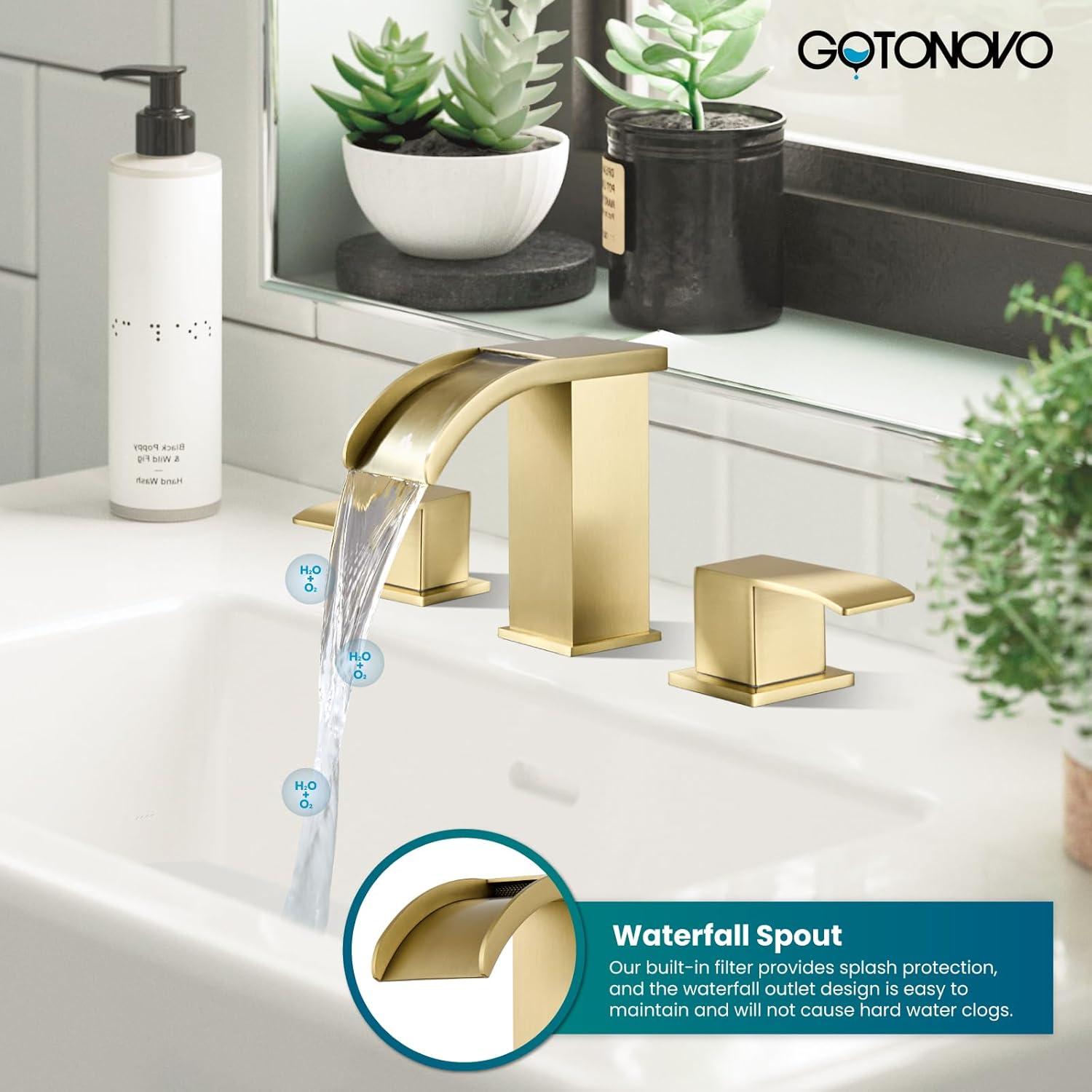 Be the first to review “gotonovo Waterfall 8 inch Widespread Bathroom Faucet Set Bathroom Sink Faucet 3 Hole 2 Handle Vanity Lavatory Deck Mount with Pop Up Drain and Water Supply Lines Round Body Matte Black & Brushed Gold(Brushed Gold)”